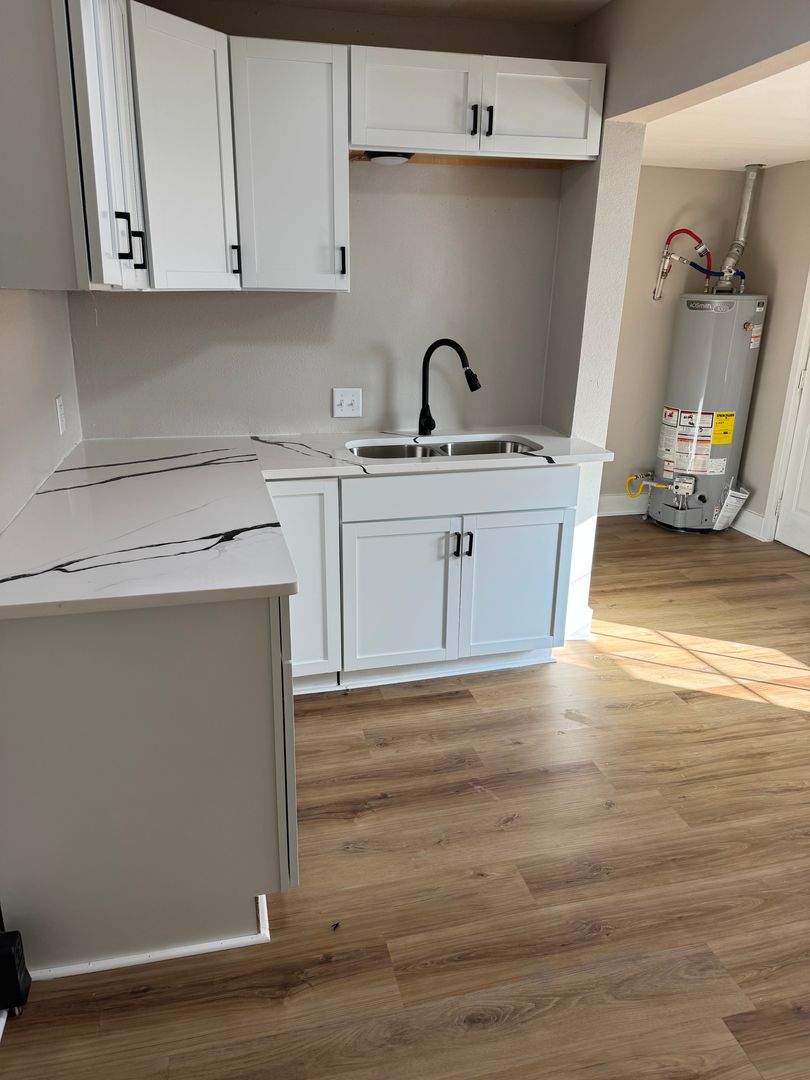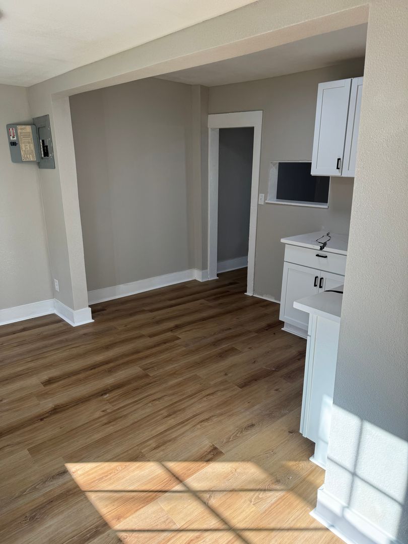 Welcome to 320 Race St, a charming residence nestled in the heart of El Dorado, KS. This recently remodeled home boasts three spacious bedrooms and a full bathroom, offering ample space for comfortable living. The home is equipped with a garbage disposal system, central heat, and A/C, ensuring a convenient and comfortable lifestyle. The open floor plan seamlessly connects the kitchen, dining, and living room, creating a perfect setting for entertaining or simply enjoying day-to-day life. Step outside to a large backyard, a perfect canvas for your outdoor activities or gardening dreams. The front of the house features a covered porch, an ideal spot for enjoying your morning coffee or winding down in the evenings. Experience the perfect blend of comfort and convenience at 320 Race St.